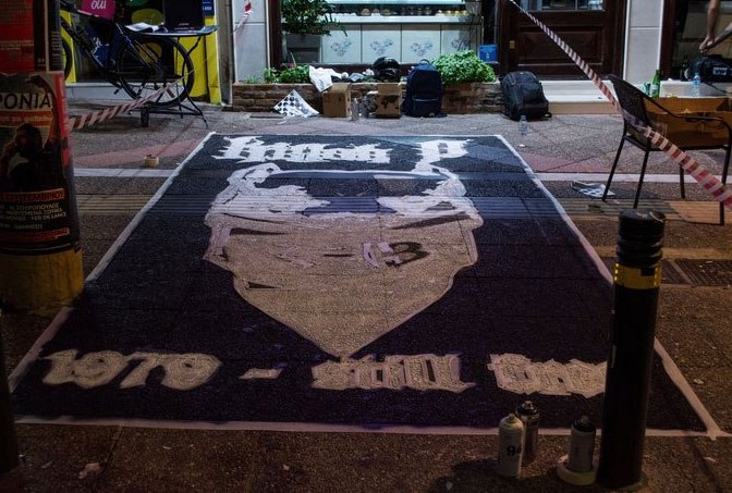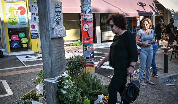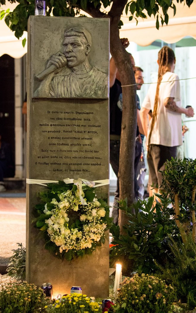 Στο σημείο που έπεσε νεκρός ο Παύλος Φύσσας έφτασε το απόγευμα η μητέρα του, Μάγδα Φύσσα, λίγο πριν ξεκινήσει η πορεία που διοργανώνεται για την επέτειο της δολοφονίας του «Killah P».