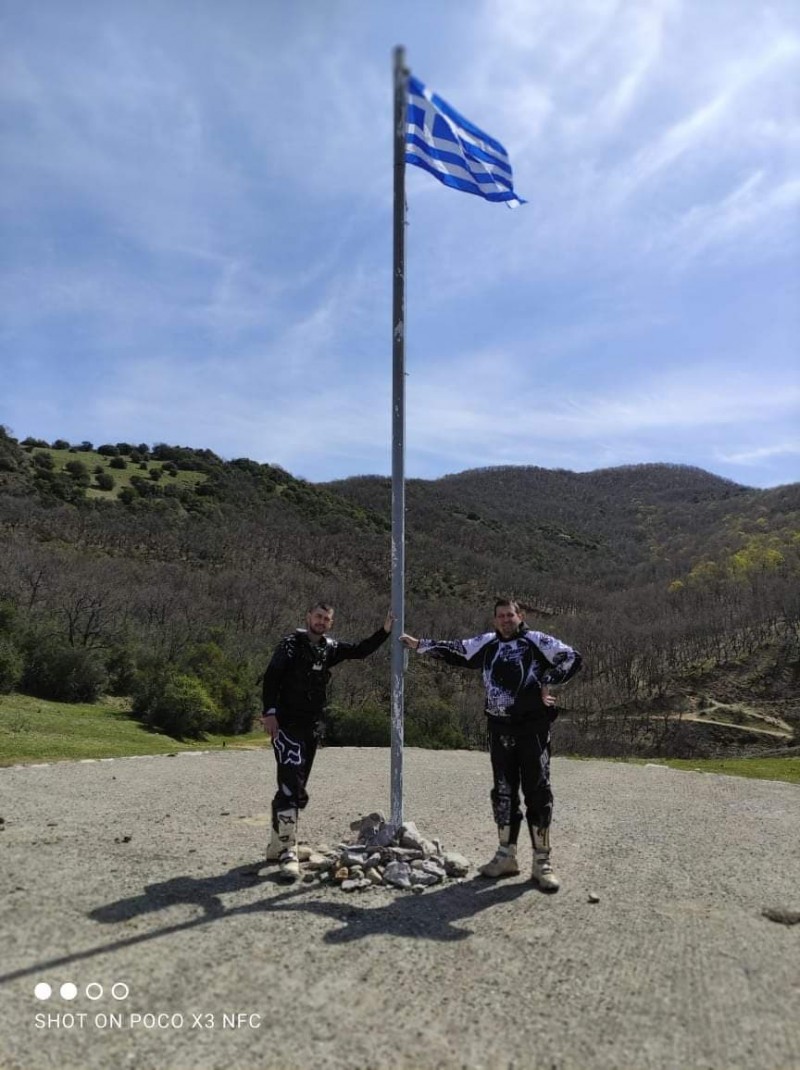 Οι τρεις τους πήγαν στο συγκεκριμένο σημείο αναφοράς της περιοχής μας και ύψωσαν την γαλανόλευκη μετά από πολύ καιρό!