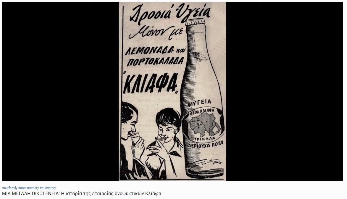 Ένα εξαιρετικό ντοκιμαντέρ του Βασίλη Λουλέ, για την εταιρεία αναψυκτικών Κλιάφα από τα Τρίκαλα