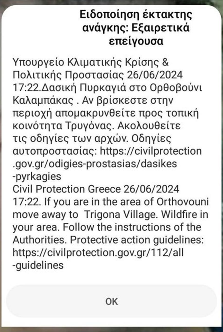 Σημειώνεται ότι οι κάτοικοι της περιοχής έλαβαν μήνυμα από το 112 να απομακρυνθούν από την περιοχή.
