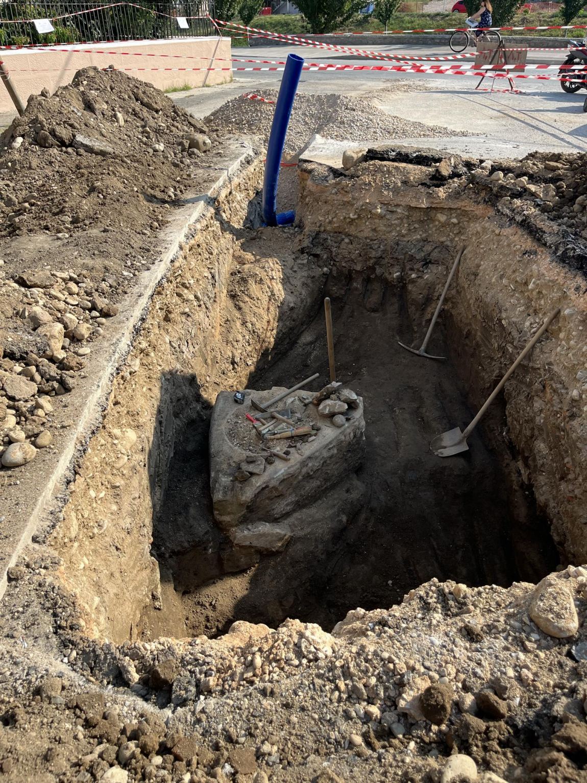 Κατά τις εργασίες του συνεργείου της ΔΕΥΑΤ, στο κέντρο των Τρικάλων, εντοπίστηκε ένα αρχαιολογικό εύρημα, όπου σύμφωνα με τις πρώτες πληροφορίες από το κλιμάκιο της Εφορείας Αρχαιοτήτων Τρικάλων, που βρίσκεται στο χώρο για την διερεύνηση των ευρημάτων, πρόκειται για ένα χάλκινο ταφικό αγγείο με οστά.Τις επόμενες ημέρες θα συνεχιστούν οι αρχαιολογικές εργασίες και τα στοιχεία που θα προκύψουν θα μελετηθούν από την Υπηρεσία.