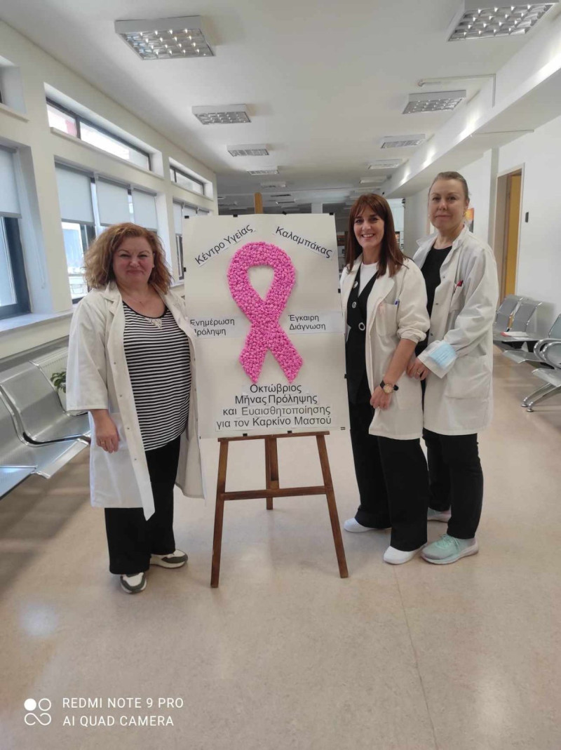 Στα πλαίσια δράσεων και ενημερώσεων του γυναικείου πληθυσμού της περιοχής για την Πρόληψη και Ενημέρωση του Καρκίνου του Μαστού καθώς ο Οκτώβριος είναι ο μήνας Πρόληψης και Ενημέρωσης, πραγματοποιήθηκαν με επιτυχία από τις Μαίες του Κέντρου Υγείας Καλαμπάκας, ομιλίες για τον καρκίνο του μαστού στα χωριά Ρίζωμα, Βασιλική, Αγναντιά, καθώς και ενημέρωση στο χώρο του Κέντρου Υγείας και στην πόλη της Καλαμπάκας.
