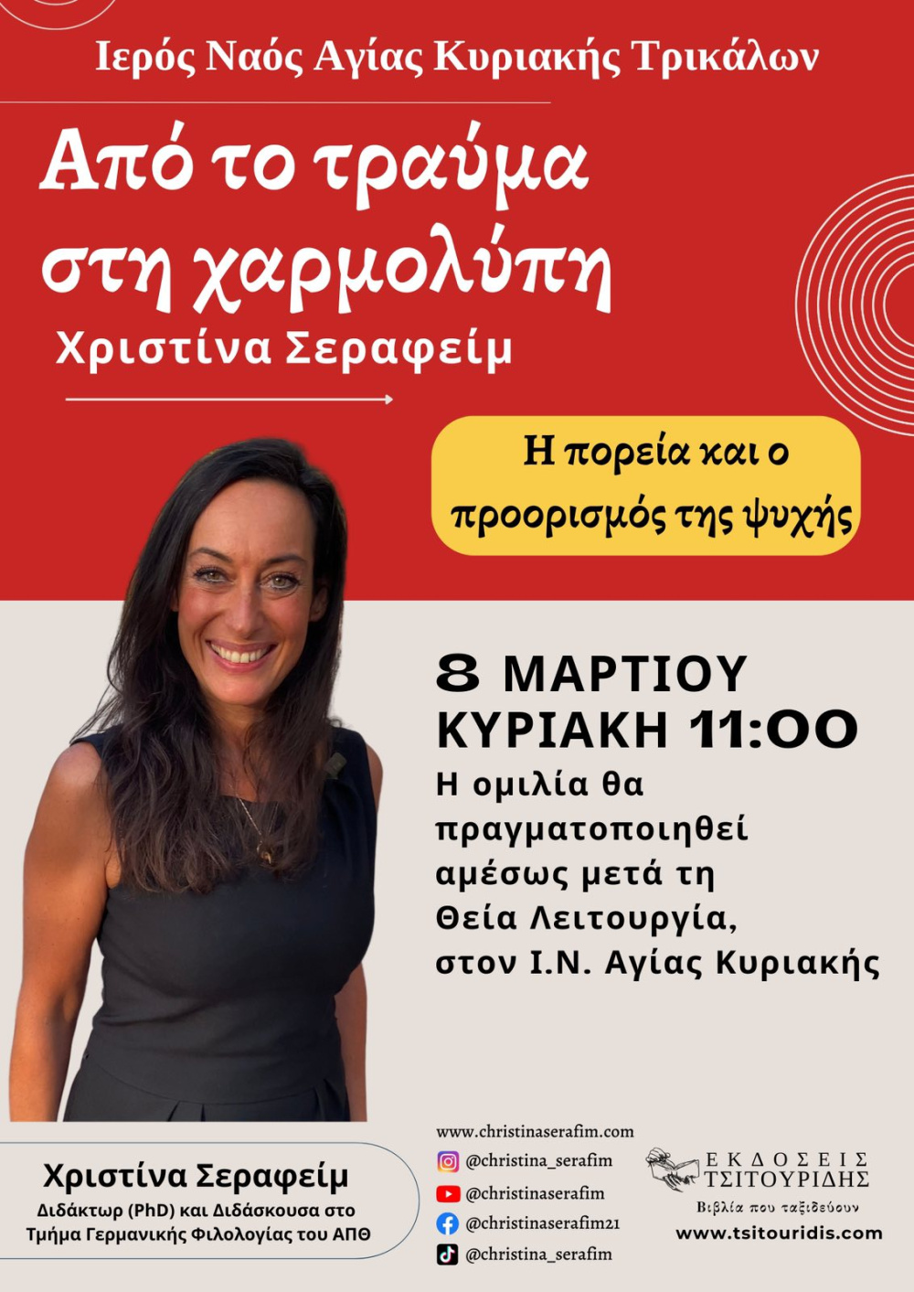 Ομιλία της Χριστίνας Σεραφείμ στον Ι.Ν Αγίας Κυριακής Τρικάλων την Κυριακή 8/3